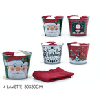Χριστουγεννιάτικο σετ κουβάς με 4 πετσέτες προσώπου με τον Άη Βασίλη 30x30cm