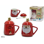 Χριστουγεννιάτικη κόκκινη κούπα με καπάκι και κουταλάκι Άγιος Βασίλης 400ml