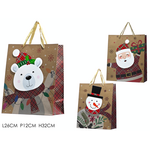 Χριστουγεννιάτικη 3D καφέ σακούλα δώρου με καρό λεπτομέρειες με Πολική Αρκούδα 26x12x32cm