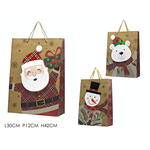 Χριστουγεννιάτικη 3D καφέ σακούλα δώρου με καρό λεπτομέρειες με Άγιο Βασίλη 30x12x42cm