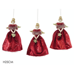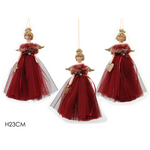 Χριστουγεννιάτικο στολίδι αγγελάκι με μπορντό φόρεμα 23cm
