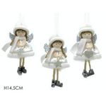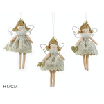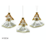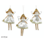 Χριστουγεννιάτικο στολίδι αγγελάκι με λευκό φόρεμα 17cm