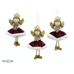 Χριστουγεννιάτικο στολίδι αγγελάκι με μπορντό βελουτέ φόρεμα και χρυσά φτερά 15cm