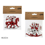 Χριστουγεννιάτικο σετ 2 στολίδια Άγιος Βασίλης σε αλογάκι σε λευκό χρώμα 8.5cm