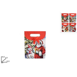 Χριστουγεννιάτικη σακούλα δώρου με Άγιο Βασίλη & Χιονάνθρωπο σε κόκκινο χρώμα 12,5x16,5x6cm