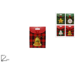 Χριστουγεννιάτικη σακούλα δώρου με σκωτσέζικο καρώ σε κόκκινο χρώμα και καμπανούλα 12,5x16,5x6cm