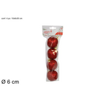 Σετ 4 μπάλες διακοσμητικές με διάμετρο 6cm με γλίτερ σε κόκκινο χρώμα