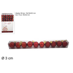 Σετ 10 μπάλες διακοσμητικές με διάμετρο 3cm σε κόκκινο χρώμα σε διάφανο κουτί