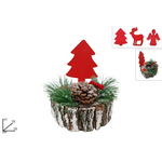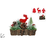 Κηροπήγιο ξύλινο με 2 θήκες και διακοσμητικά κουκουνάρια και μούρα με κόκκινο τάρανδο 17x22x22cm