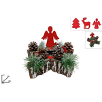 Κηροπήγιο ξύλινο σε σχήμα αστεριού με διακοσμητικά κουκουνάρια και μούρα με κόκκινο αγγελάκι 17x26x26cm