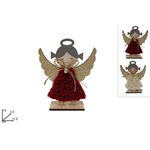 Ξύλινος άγγελος με γούνα και χρυσά φτερά σε κόκκινο χρώμα 15x3.5x11.5cm