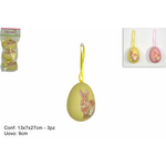 Σετ 3 Διακοσμητικά πασχαλινά κρεμαστά αυγά με λαγουδάκι σε 2 χρώματα 9cm