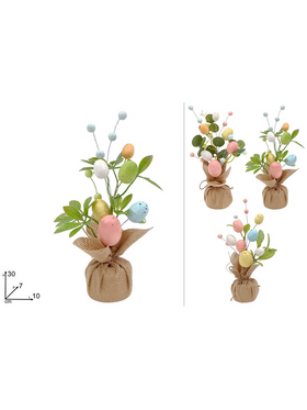 Πασχαλινό διακοσμητικό γλαστράκι με κρεμαστά αυγά σε παστέλ αποχρώσεις 30x7x10cm