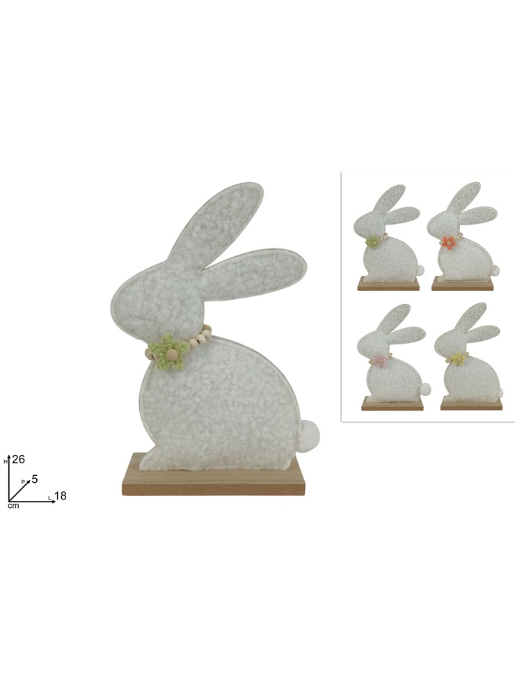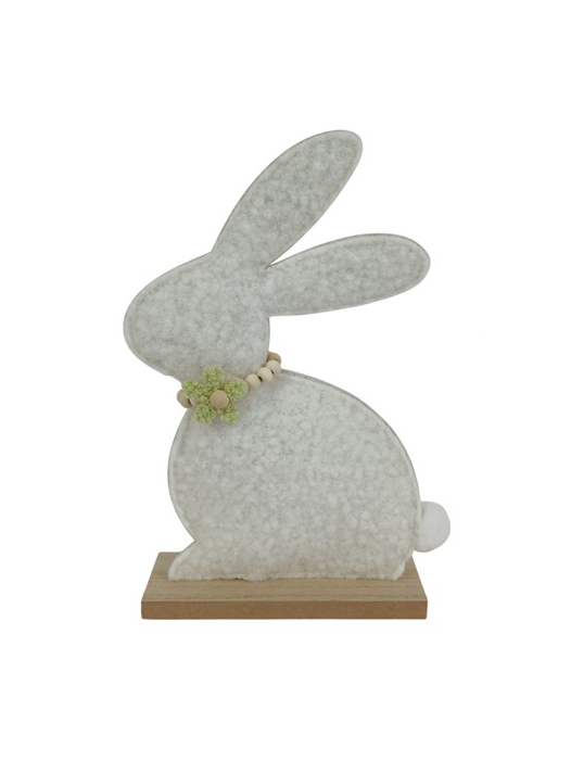 Πασχαλινός διακοσμητικός λαγός από τσόχα σε ξύλινη βάση 26x5x18cm