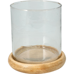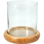 Κηροπήγιο γυάλινο με ξύλινη βάση 12x12cm