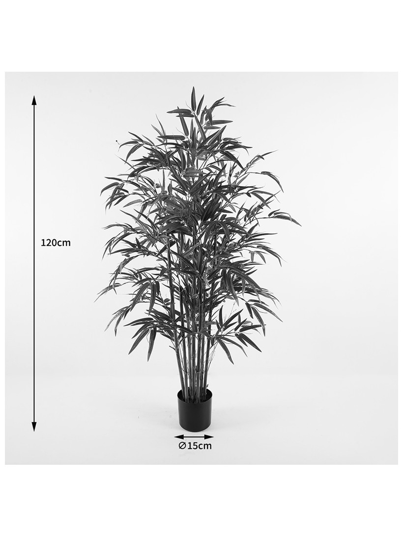 Με τους λεπτούς, ρεαλιστικούς κορμούς του που αναδύονται από τη βάση και τα πυκνά, λαμπερά πράσινα φύλλα του που απλώνονται σε πλούσιο φύλλωμα, αυτό το φυτό είναι μια πραγματική όαση ομορφιάς και φυσικής αύρας.