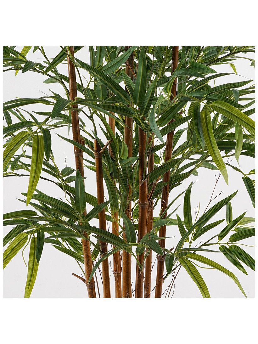 Με τους λεπτούς, ρεαλιστικούς κορμούς του που αναδύονται από τη βάση και τα πυκνά, λαμπερά πράσινα φύλλα του που απλώνονται σε πλούσιο φύλλωμα, αυτό το φυτό είναι μια πραγματική όαση ομορφιάς και φυσικής αύρας.