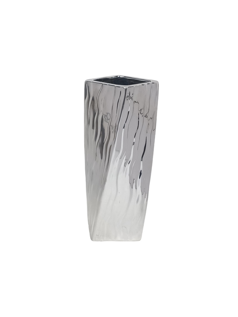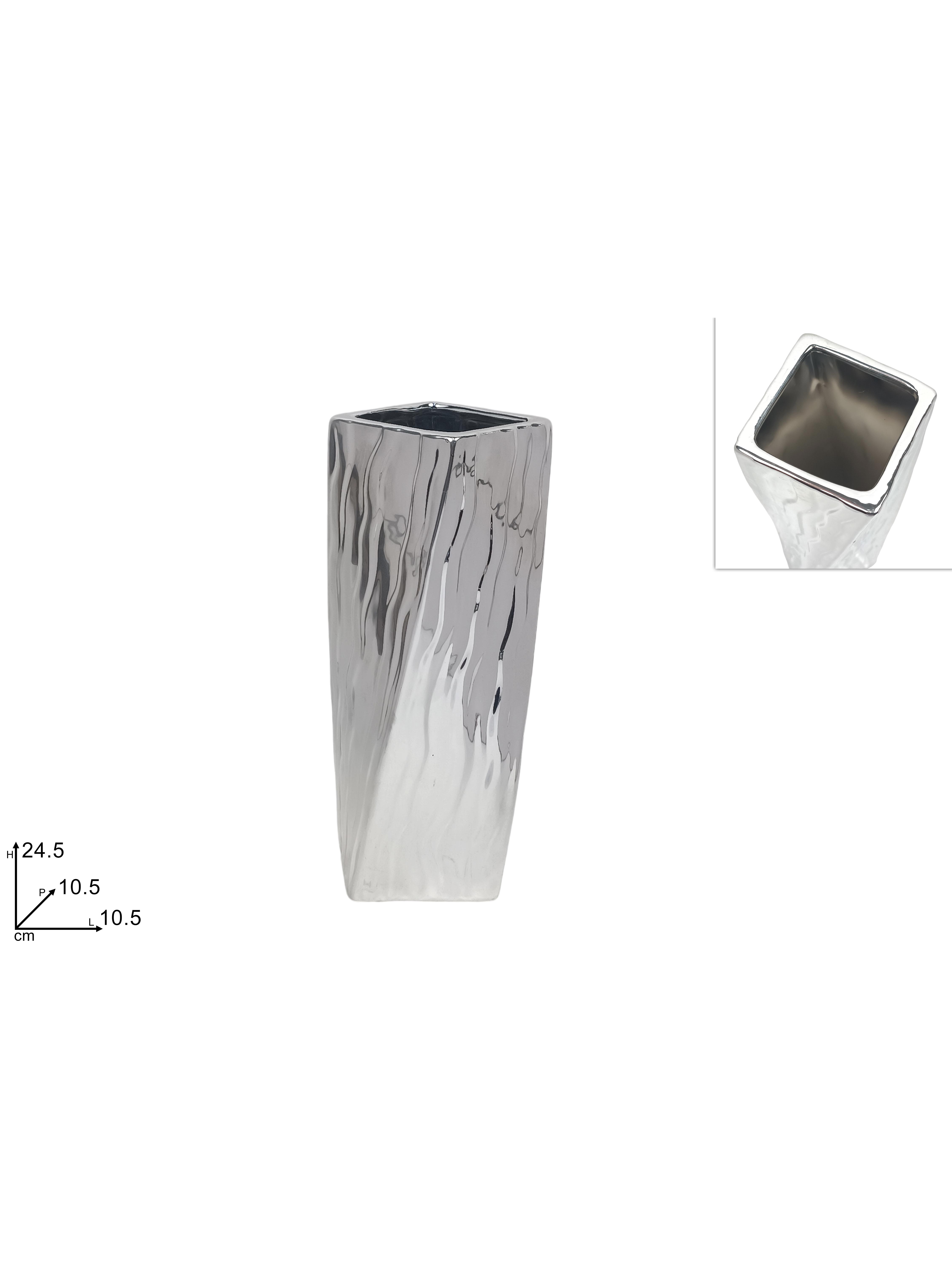 Διακοσμητικό βάζο με κυματιστή υφή και τετράγωνη βάση σε ασημί χρώμα 24.5x10.5x10.5cm