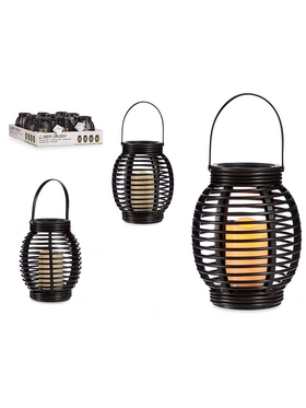 Φαναράκι για κερί με λέντ φώς με διαστάσεις 16,5x21cm με λαβή σε μαύρο χρώμα