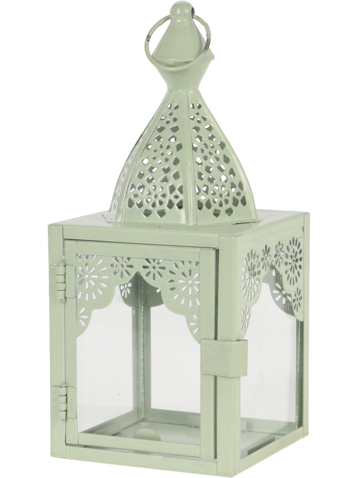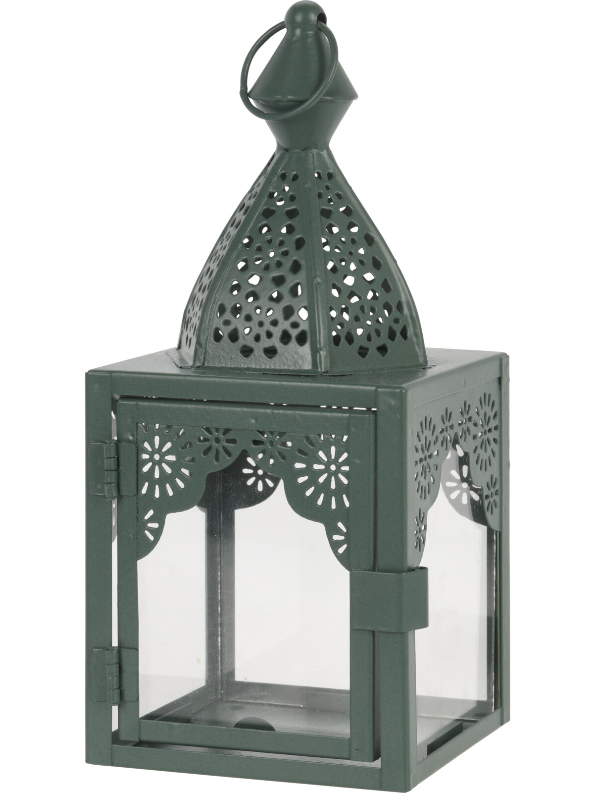Φαναράκι μεταλλικό με γυαλί σε πράσινο χρώμα 7.5x17cm