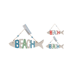 Decorative hanging wooden fish with inscription "Beach" in 2 colors