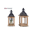 GiftDecor Wooden Square Lanter in Natural Color with Black Metallic Ceiling