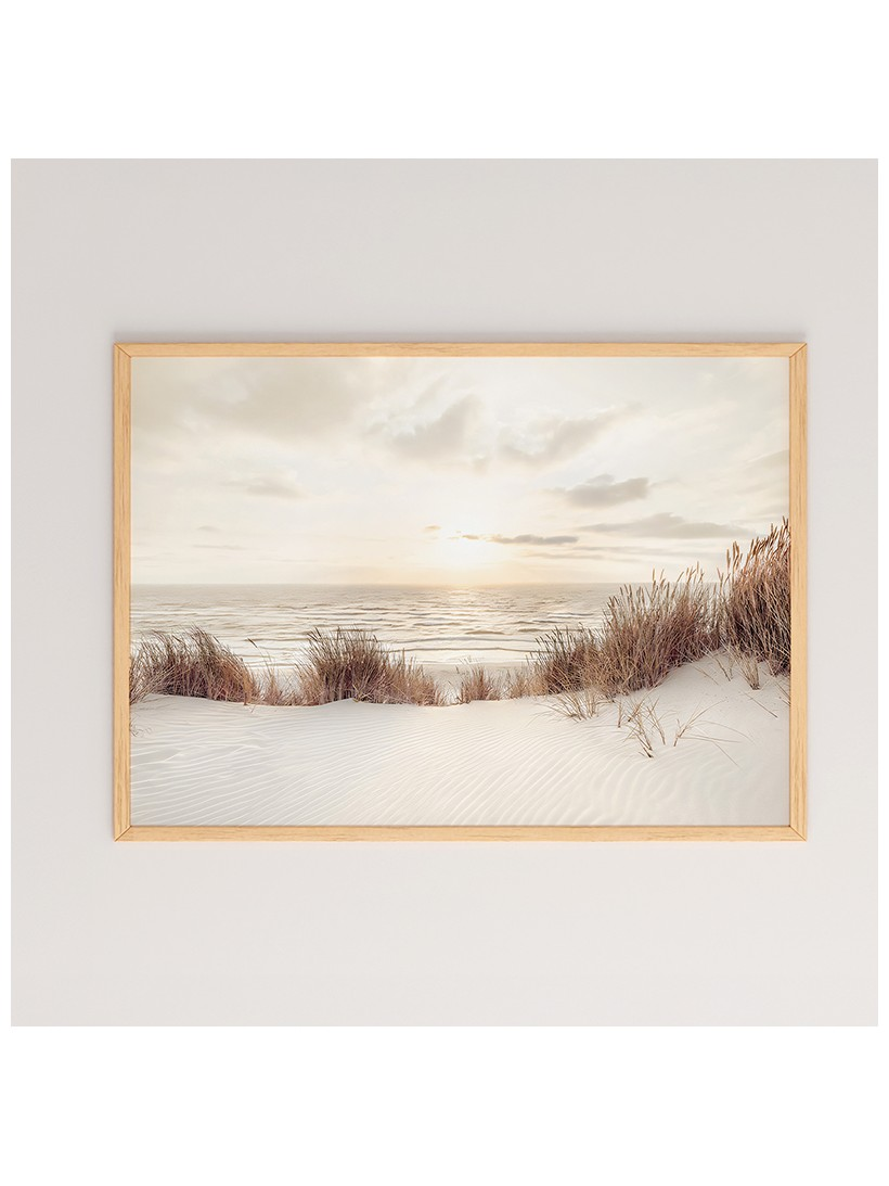 Φέρτε τη γαλήνη της θάλασσας στον χώρο σας με τον πίνακα Bordele . Η φωτογραφία αποτυπώνει ένα ήρεμο παραθαλάσσιο τοπίο με αμμόλοφους και αποξηραμένα χόρτα, δημιουργώντας μια αίσθηση χαλάρωσης και ζεστασιάς.