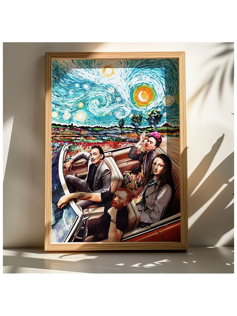 Αυτό το έργο είναι μια εκρηκτική συγχώνευση κλασικών αριστουργημάτων και σύγχρονου δυναμισμού. Συνδυάζει την ένταση του "Έναστρου Ουρανού" του Βαν Γκογκ με μια ζωντανή σκηνή γεμάτη μουσικούς και χρώμα, δημιουργώντας έναν οπτικό πανικό με τον καλύτερο τρόπο.