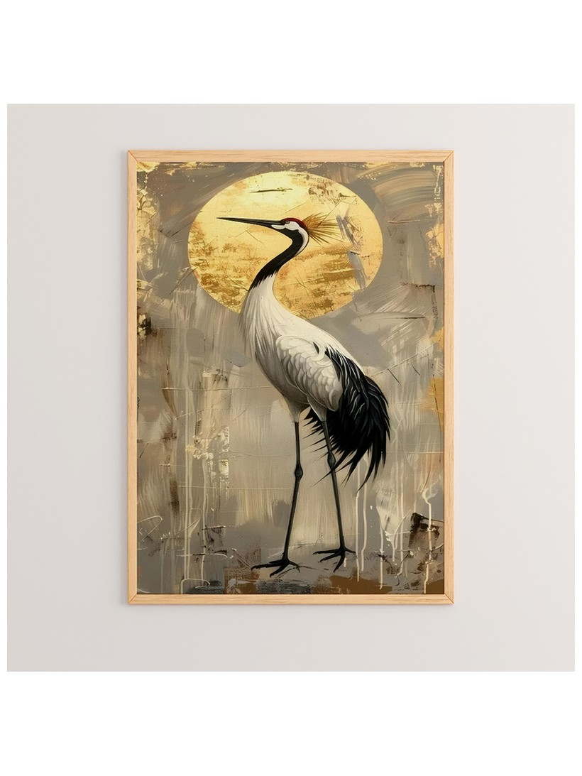 επιβλητικό γερανό σε ένα φόντο που κυριαρχείται από ένα χρυσό φεγγάρι