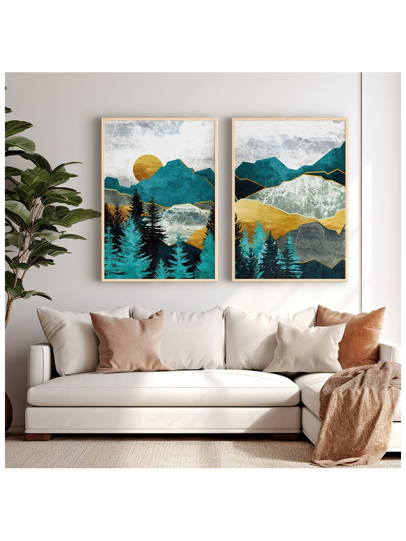 Αναζητήστε την τέχνη που αποπνέει έντονη προσωπικότητα και πολυτελή αισθητική. Το δίπτυχο Lovas είναι μία δραματική αισθητική δήλωση που αναπαριστά ένα αφηρημένο, γεωμετρικό ορεινό τοπίο, όπου ο χρυσός ήλιος συναντά το βαθύ τιρκουάζ της θάλασσας ή του δάσους. Κάθε φορά που το βλέμμα σας εστιάζει στις έντονες αντιθέσεις και τις καθαρές γραμμές, νιώθετε μια αίσθηση δύναμης, ανανέωσης και υψηλής αισθητικής. Το έργο συμβολίζει την ισορροπία των αντιθέσεων, την αρχοντιά και τη διακριτική γοητεία του μοντέρνου design.