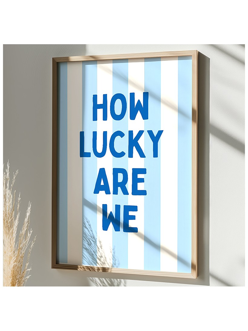 Εκφράστε την ευγνωμοσύνη και τη θετική σας διάθεση με τον αισιόδοξο πίνακα Luckely. Ο πίνακας αυτός φέρει το ελπιδοφόρο μήνυμα "HOW LUCKY ARE WE" με έντονα μπλε γράμματα. Το φόντο με τις γαλάζιες και λευκές ρίγες δημιουργεί μια αίσθηση ηρεμίας και χαράς, καθιστώντας τον ιδανικό για κάθε χώρο που χρειάζεται μια δόση έμπνευσης.