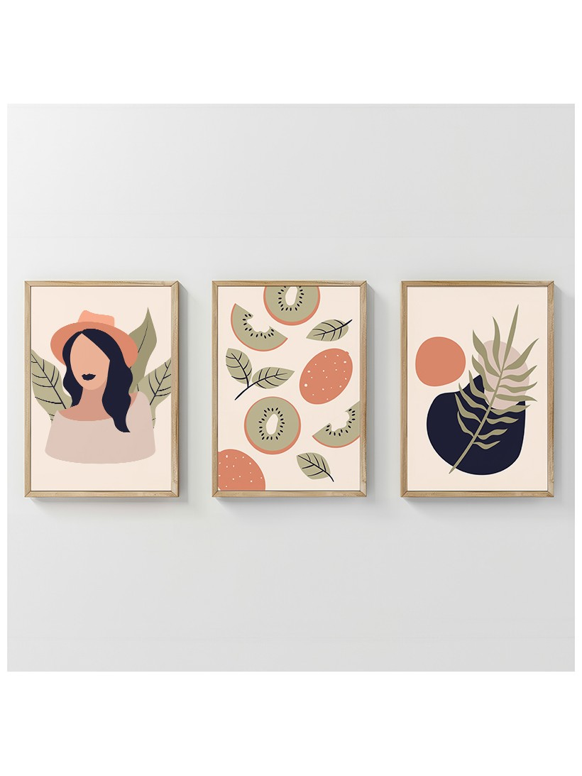 Αναβαθμίστε τον χώρο σας με μία πινελιά φρεσκάδας και παιχνιδιάρικου στυλ: το Τρίπτυχο Noven είναι το ιδανικό στοιχείο για να προσδώσετε έναν minimalist, ανάλαφρο και ευχάριστο χαρακτήρα στους τοίχους σας. Αυτή η σύνθεση τριών τεμαχίων, ενισχυμένη από ψηφιακές εκτυπώσεις υψηλής ανάλυσης, διαθέτει αφηρημένα μοτίβα με στυλιζαρισμένα φρούτα και φύλλα σε μία απαλή παλέτα από γήινα nude και δροσερές πράσινες αποχρώσεις. Μέσα από την αρμονική τους διάταξη, δημιουργούν έναν διακριτικό, αισιόδοξο οπτικό ρυθμό και μία ξεχωριστή αισθητική δήλωση.