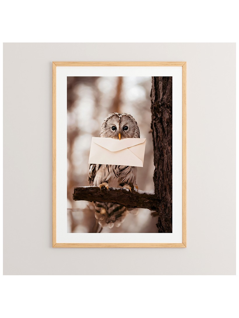 Δώστε έναν παραμυθένιο αέρα στον χώρο σας με αυτόν τον μαγευτικό πίνακα. Η εικόνα της κουκουβάγιας που κρατάει ένα γράμμα προσδίδει μια νότα μυστηρίου και ζεστασιάς, κάνοντάς τον ιδανική επιλογή για να διακοσμήσει το παιδικό δωμάτιο, το γραφείο ή το σαλόνι σας.