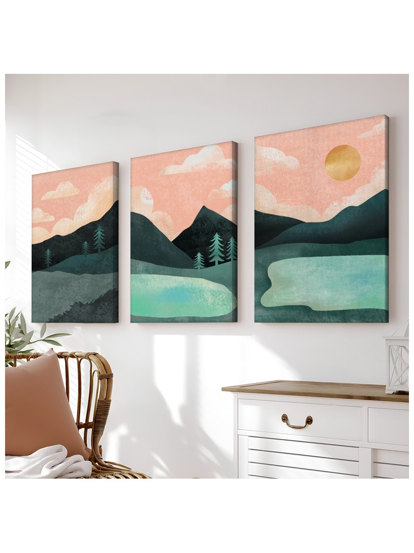 Ο τρίπτυχος πίνακας Anbel αποτυπώνει ένα ονειρικό, αφηρημένο τοπίο που θυμίζει σούρουπο ή αυγή. Δημιουργεί μια ατμόσφαιρα μυστηρίου και γαλήνης και είναι ιδανικός για όσους θέλουν να προσθέσουν μια ποπ χρώματος και μια ρομαντική, moody αισθητική στον χώρο τους.