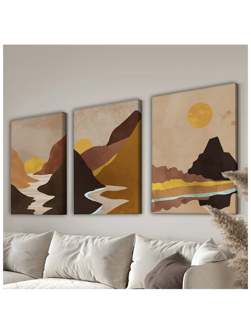 Ο τρίπτυχος πίνακας Elthar αποτυπώνει ένα δυναμικό, αφηρημένο τοπίο με επιβλητικές σιλουέτες βουνών, έναν λαμπερό ήλιο και ένα κυματιστό ποτάμι που διασχίζει τη σύνθεση. Οι έντονοι τόνοι δημιουργούν μια αίσθηση εξωτικής ζέστης και πολυτέλειας. Aποτελεί το ιδανικό statement piece για να κυριαρχήσει σε έναν μεγάλο τοίχο σαλονιού ή τραπεζαρίας.