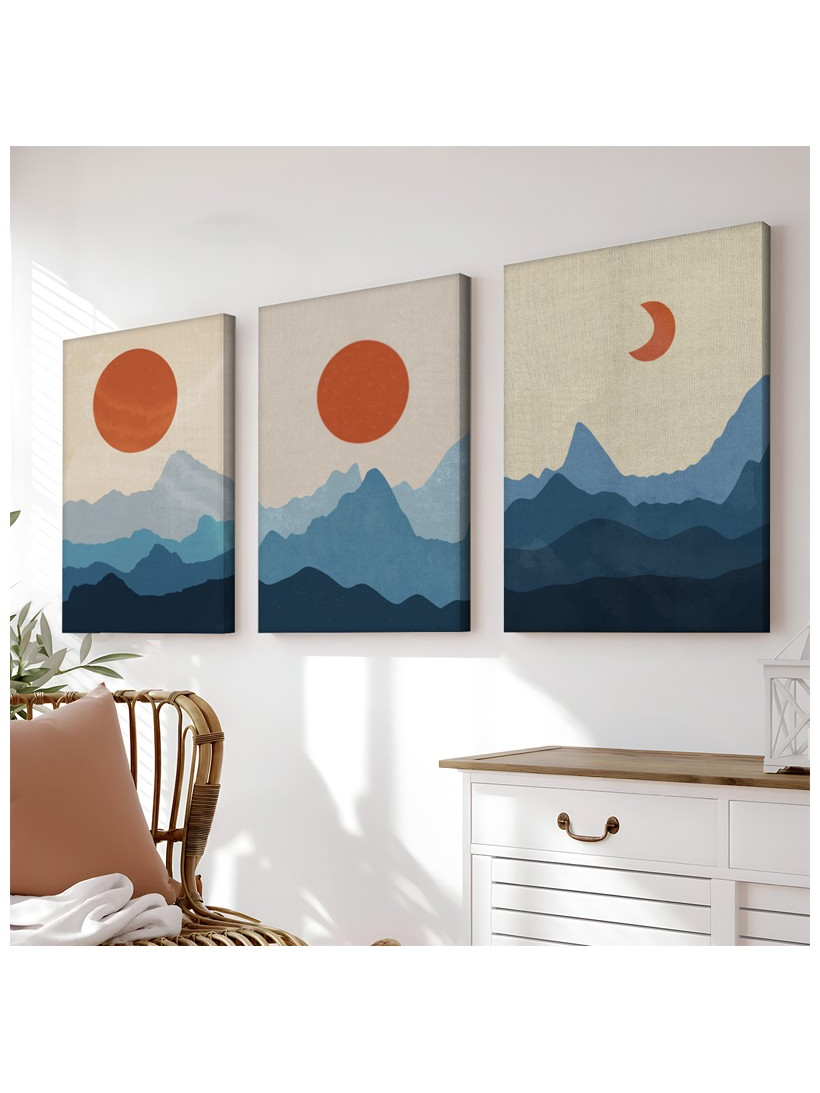 Ο τρίπτυχος πίνακας Voriel είναι μια μινιμαλιστική και ταυτόχρονα εντυπωσιακή απεικόνιση ενός τοπίου με βουνά και υψομετρικές καμπύλες κάτω από τον ήλιο και το φεγγάρι. Είναι ιδανικός για όσους αναζητούν ένα έργο τέχνης με έντονη χρωματική ταυτότητα που προσθέτει μια αίσθηση ηρεμίας και μοντέρνου στυλ στο σαλόνι ή το γραφείο.