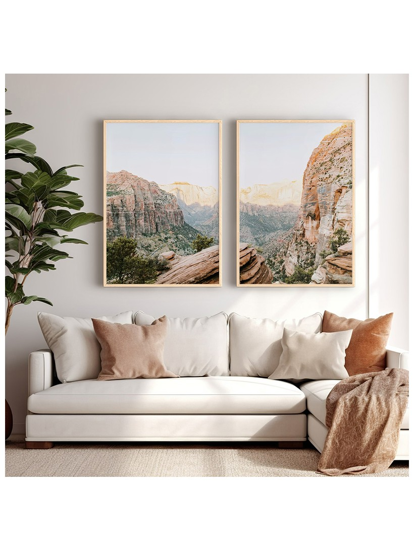 Αφήστε την ψυχή σας να αποδράσει στη δραματική ομορφιά του βουνού και τη ζεστασιά της γήινης παλέτας. Το δίπτυχο Secrea αναπαριστά την επιβλητική ομορφιά ενός φαραγγιού ή ορεινού περάσματος. Κάθε φορά που εστιάζετε στους βράχους, την πλούσια βλάστηση και τον ανοιχτό ουρανό, νιώθετε μια αίσθηση ελευθερίας, δύναμης και βαθιάς ηρεμίας. Το έργο συμβολίζει την απομόνωση, τη διαχρονική αξία και τη γοητεία της άγριας φύσης.