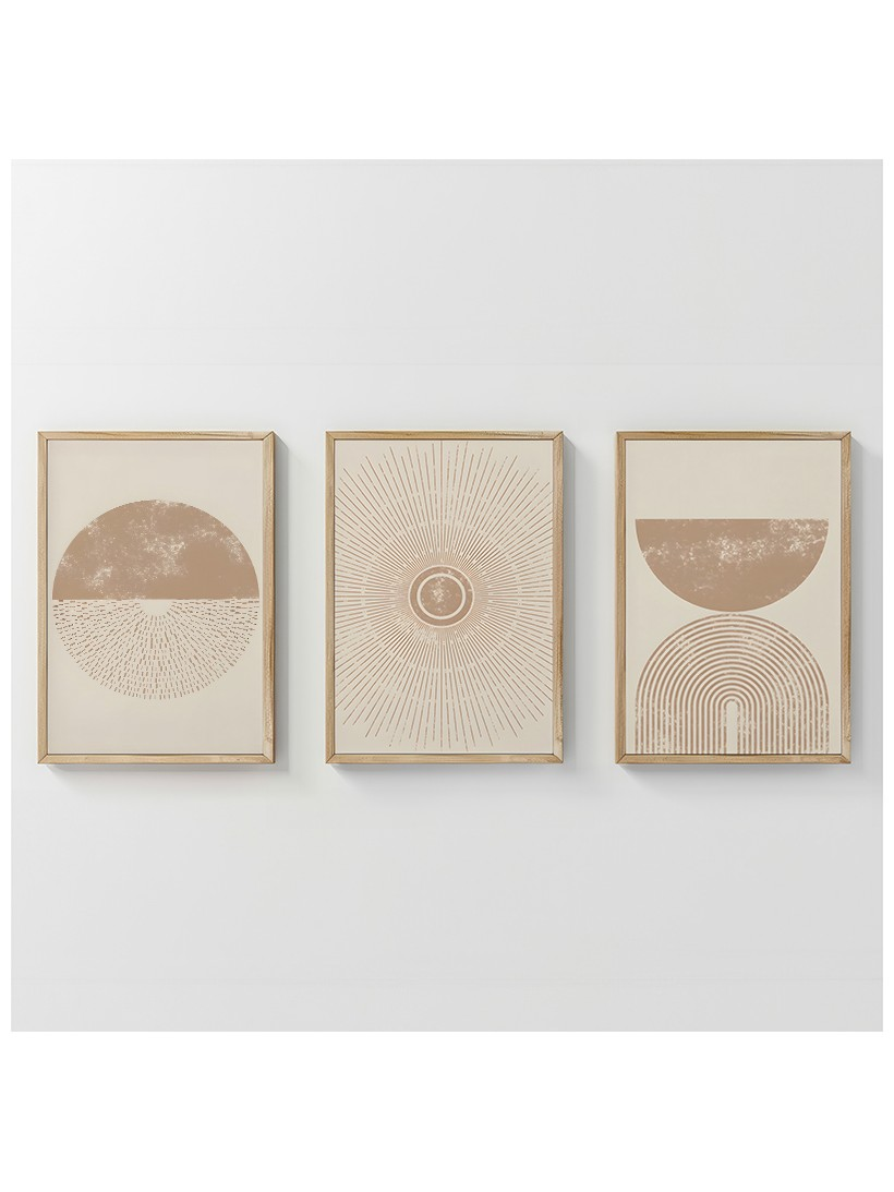 Εισάγετε στον χώρο σας ένα έργο υψηλής αισθητικής που ισορροπεί τη γεωμετρική ακρίβεια με τη ζεστασιά των γήινων, ουδέτερων τόνων. Το τρίπτυχο Varenzy είναι μία αισθητική δήλωση που αποτελείται από τρία ξεχωριστά, αλληλεπιδρώντα τεμάχια. Κάθε πίνακας παρουσιάζει αφηρημένα γεωμετρικά στοιχεία – κυρίως ημικύκλια και μοτίβα τύπου μαντάλα.