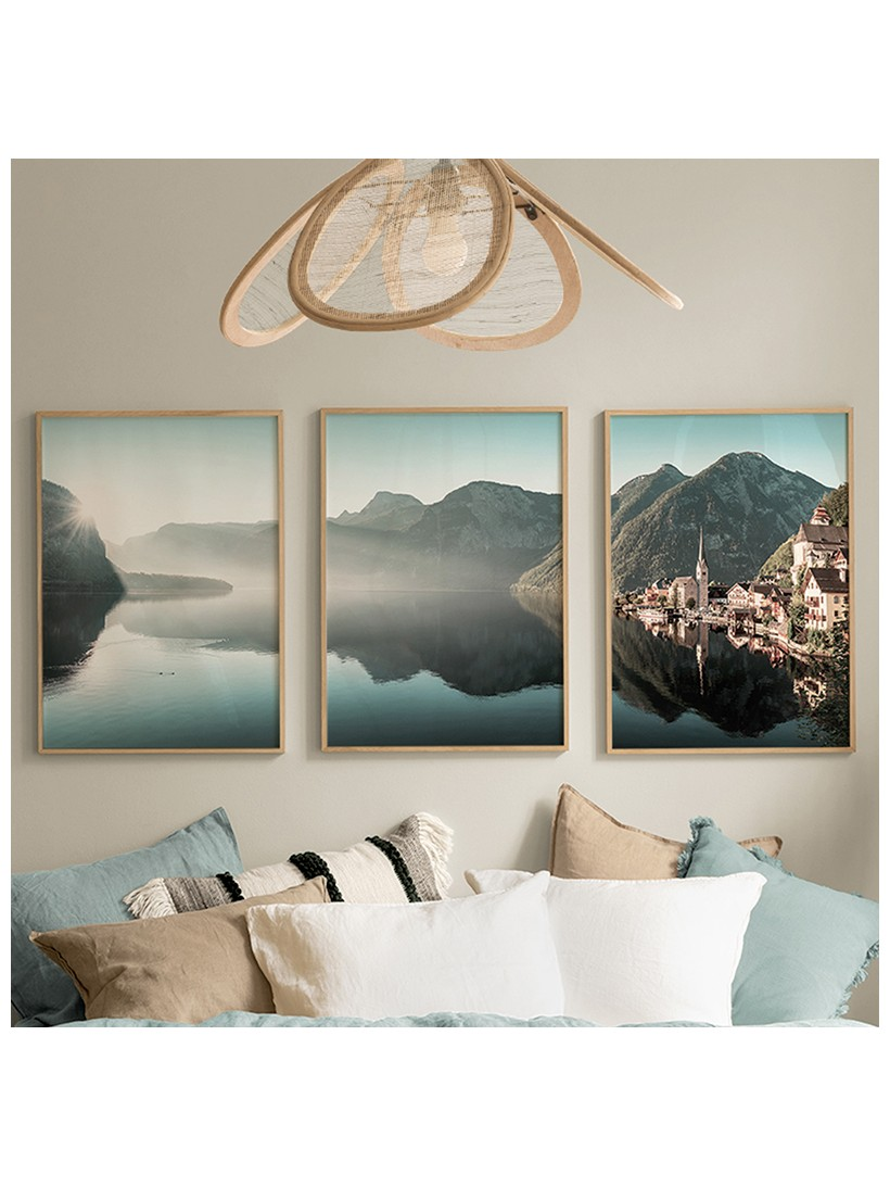 Μεταμορφώστε τον χώρο σας σε ένα ήρεμο καταφύγιο με το εντυπωσιακό τρίπτυχο Vynelle. Αυτό το σετ τριών πινάκων αιχμαλωτίζει τη δραματική ομορφιά των ορεινών και υδάτινων τοπίων. Οι ψυχροί τόνοι προσδίδουν μια αίσθηση γαλήνης και βάθους, ενώ η ποιότητα της εκτύπωσης δίνει ζωή στη θέα.