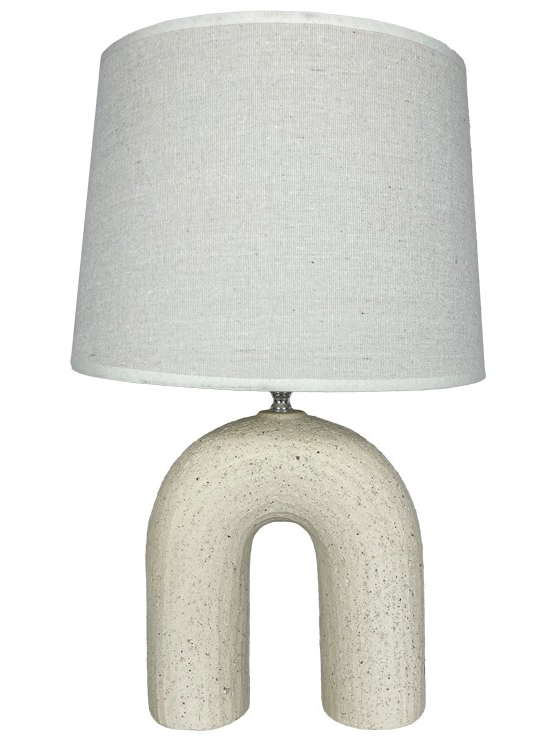Η βάση του φωτιστικού διαθέτει ανάγλυφες λεπτομέρειες που προσθέτουν υφή και ενδιαφέρον, ενώ το υφασμάτινο αμπαζούρ διαχέει ένα ομοιόμορφο, απαλό φως, δημιουργώντας μια ζεστή και φιλόξενη ατμόσφαιρα. Η μινιμαλιστική του αισθητική το καθιστά ιδανικό για μια ποικιλία διακοσμητικών στυλ, από το μοντέρνο και το σκανδιναβικό έως το εκλεκτικό.