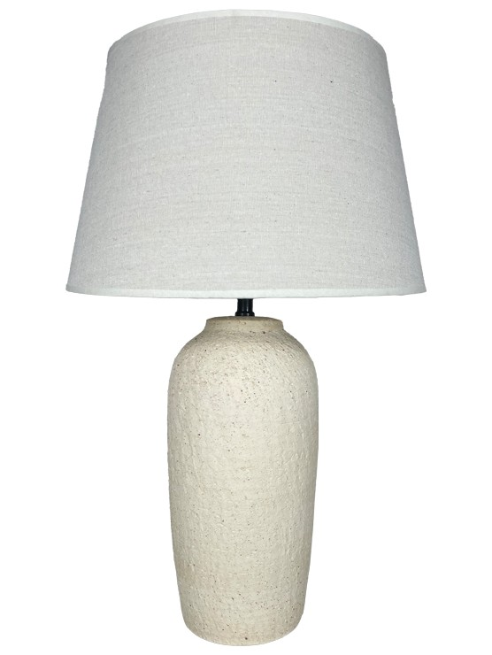 Η βάση του φωτιστικού ξεχωρίζει χάρη στην πλούσια, ανάγλυφη υφή της και προσδίδει βάθος και χαρακτήρα, κάνοντας κάθε φωτιστικό μοναδικό. Το λιτό, υφασμάτινο αμπαζούρ συμπληρώνει ιδανικά τη βάση, διαχέοντας ένα απαλό και ομοιόμορφο φως που δημιουργεί μια φιλόξενη και χαλαρωτική ατμόσφαιρα.