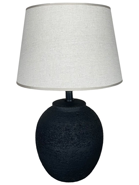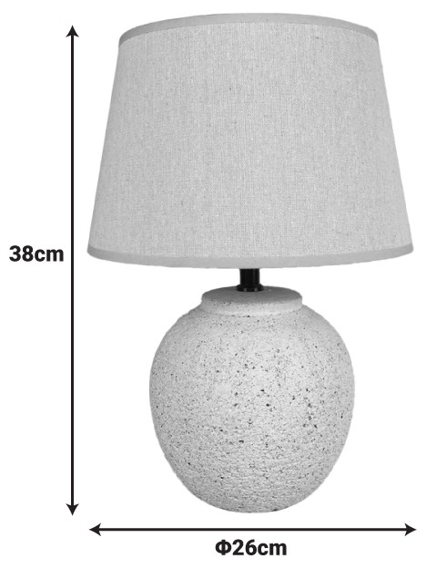 Η στρογγυλεμένη, κεραμική βάση διαθέτει μια διακριτική υφή, ενώ το λιτό, υφασμάτινο αμπαζούρ διαχέει το φως ομοιόμορφα, δημιουργώντας μια φιλόξενη και χαλαρωτική ατμόσφαιρα.