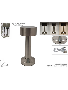 Φωτιστικό επιτραπέζιο μεταλικό με επαναφορτιζόμενες μπαταρίες σε ασημί χρώμα