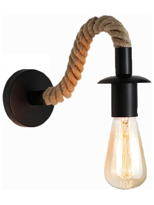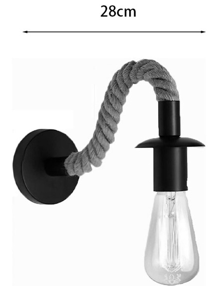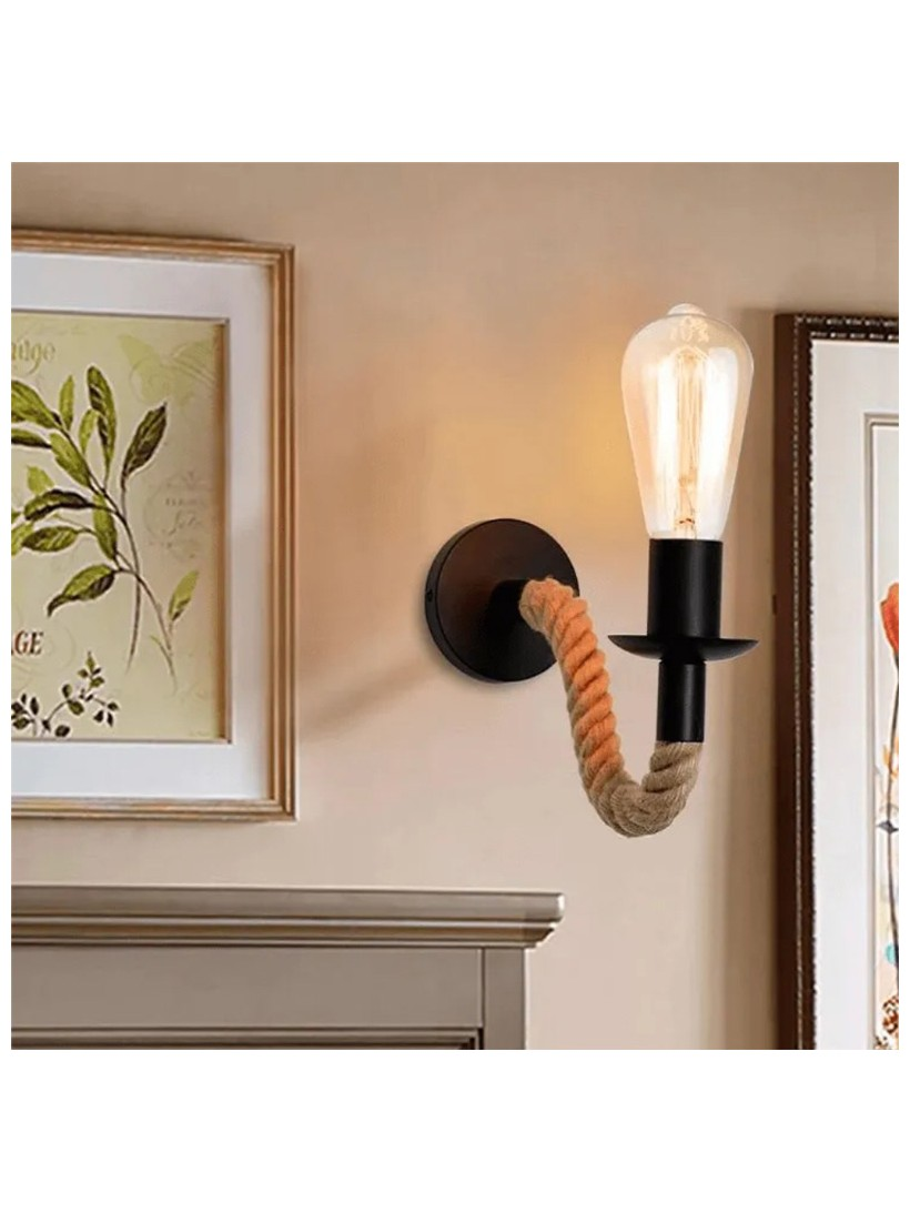 Φωτιστικό Τοίχου-Απλίκα Kaniwel Pakoworld e27 Μέταλλο και Σχοινί σε Μαύρη-Φυσική Απόχρωση 28x10x10εκ