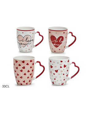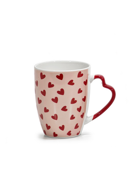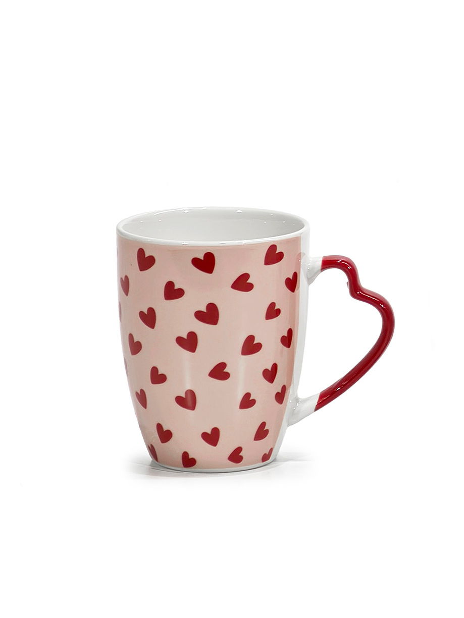 Κούπα κεραμική με λαβή καρδιά σε ροζ χρώμα με καρδούλες 330ml