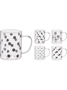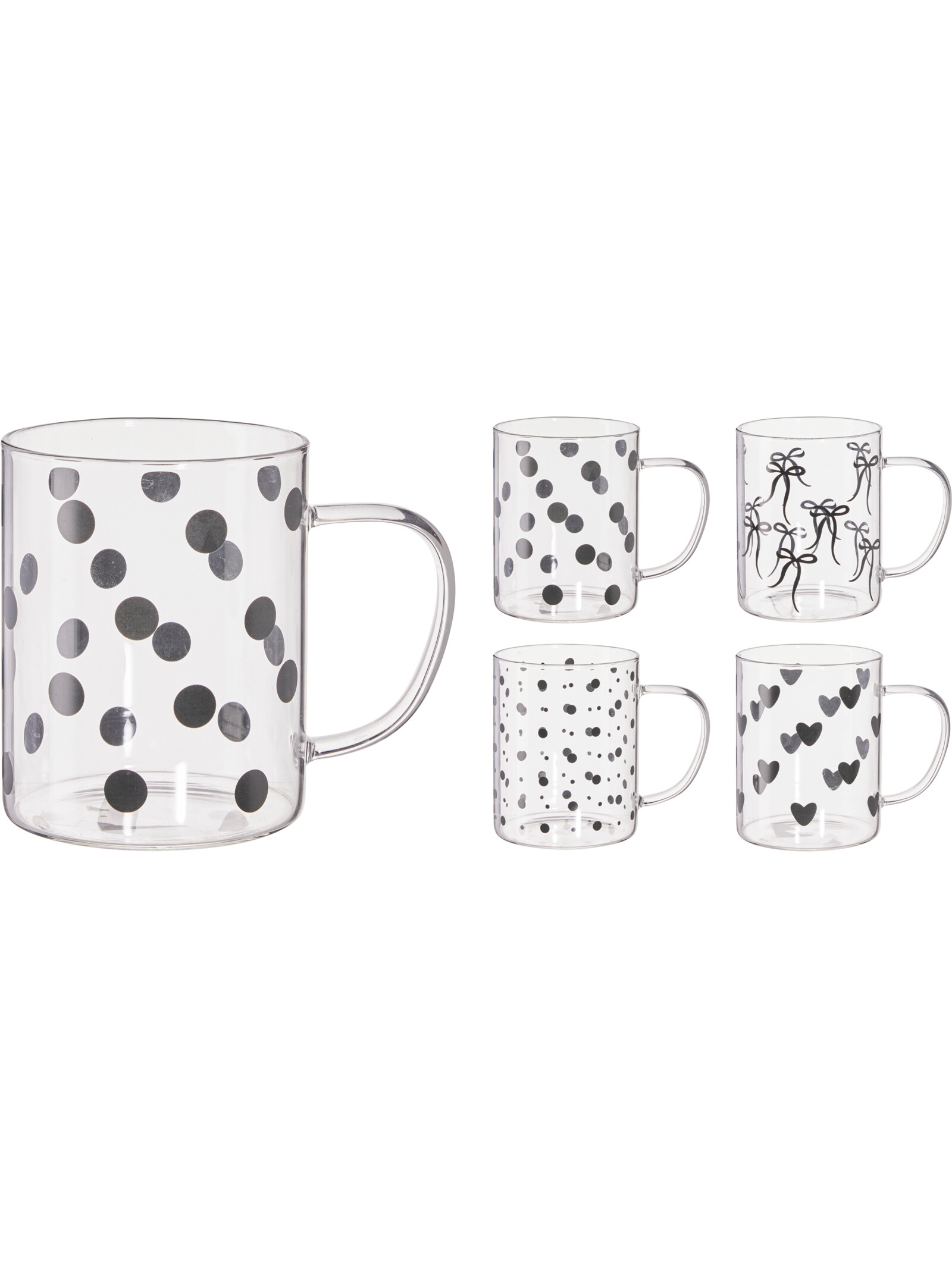 Κούπα γυάλινη διάφανη με σχέδια σε 4 χρώματα 420ml