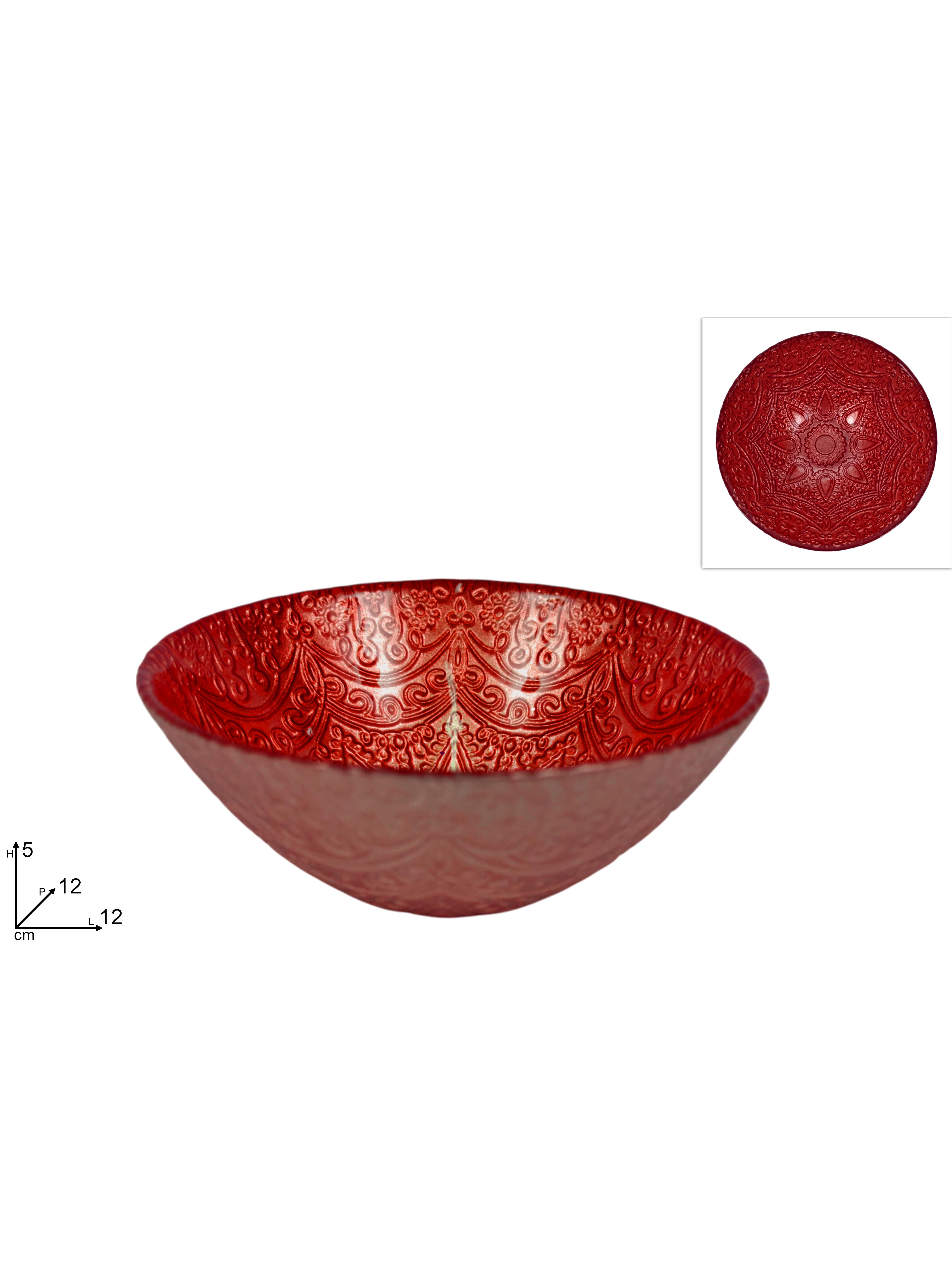Μπολ γυάλινο με διακόσμηση σε κόκκινο χρώμα 5x12x12cm