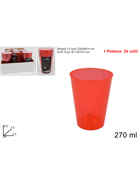 Πλαστικό ποτήρι 6τμχ σε κόκκινο χρώμα 270ml
