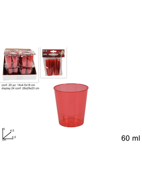 Πλαστικό ποτήρι σφηνάκι σετ 20τμχ σε κόκκινο χρώμα 60ml