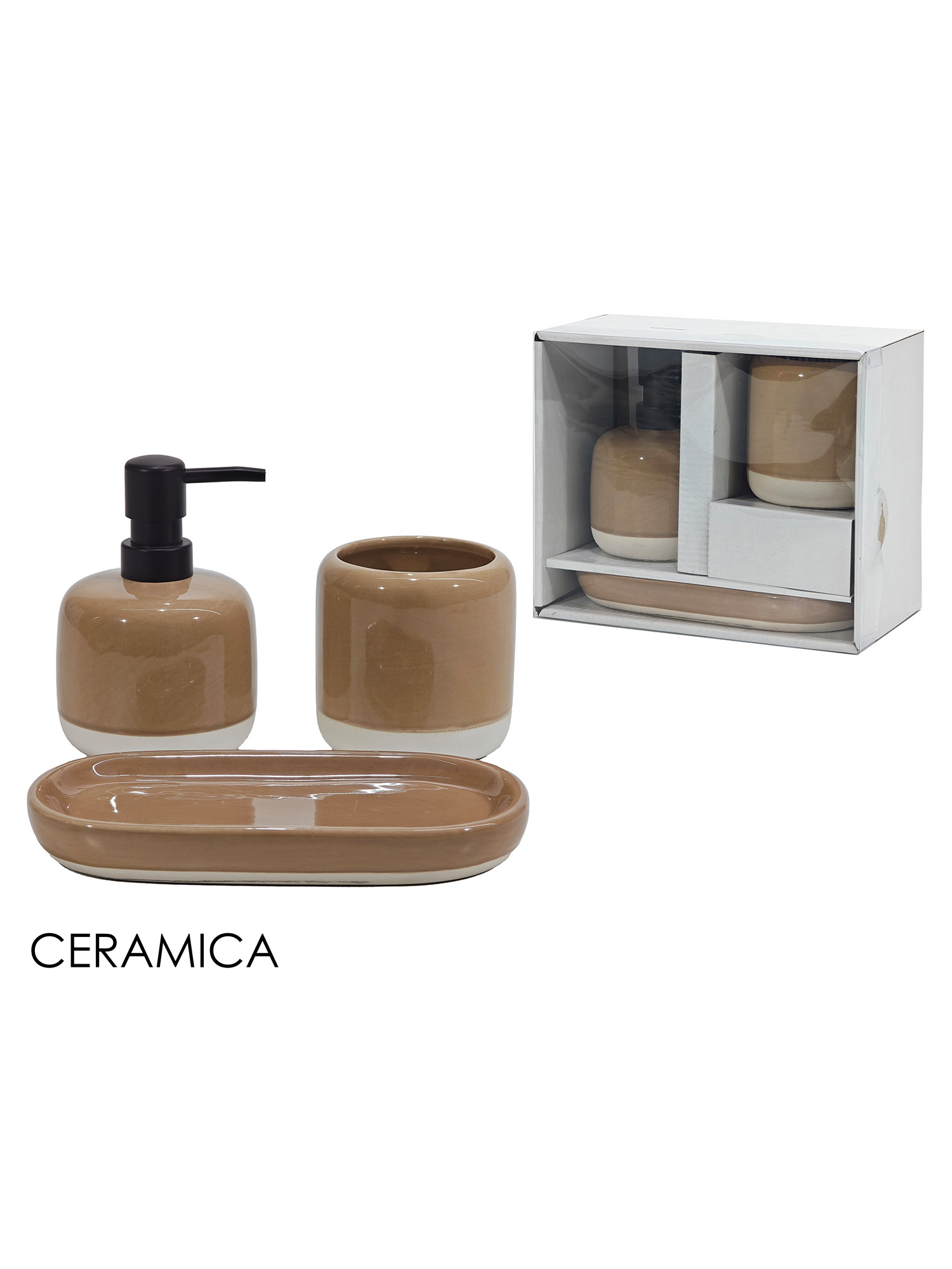 Κεραμικό σετ μπάνιου 3τμχ σε καφέ χρώμα